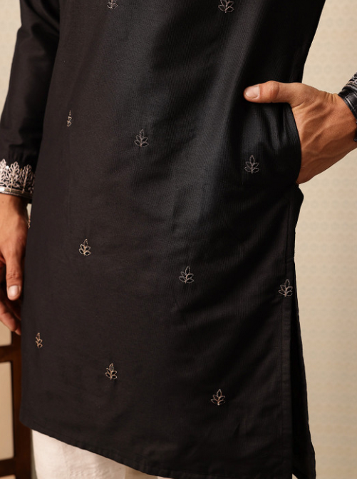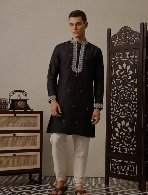 Floral Yoke Design Mandarin Collar Sequinned Jashn Kurta